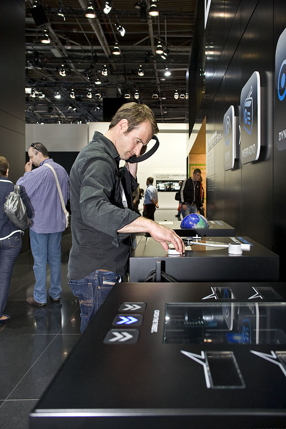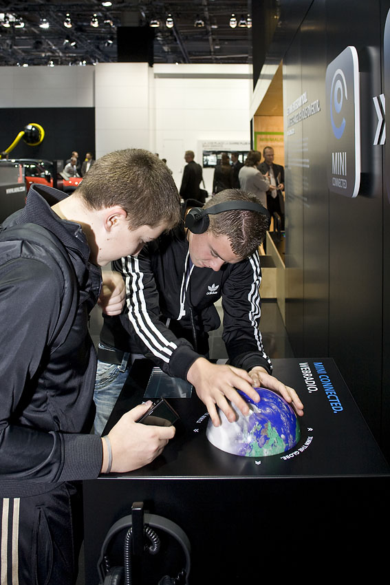 Ganz neu: MINI CONNECTED – hierzu entwickelte hielscherlungershausen eine kleine Exponatfamilie, die das technisch komplexe Thema auf eine spielerisch einfache Art erlebbar macht. Künftig werden Twitter, MINI Dynamic Music und MINI Webradio als MINI CONNECTED App den MINI Fahrer via iPhone bei jeder Fahrt unterhalten.