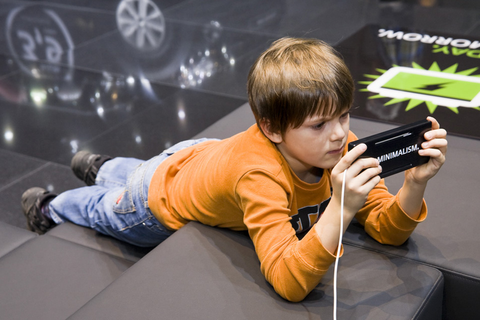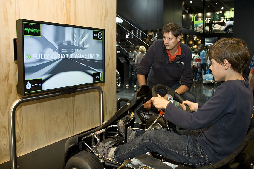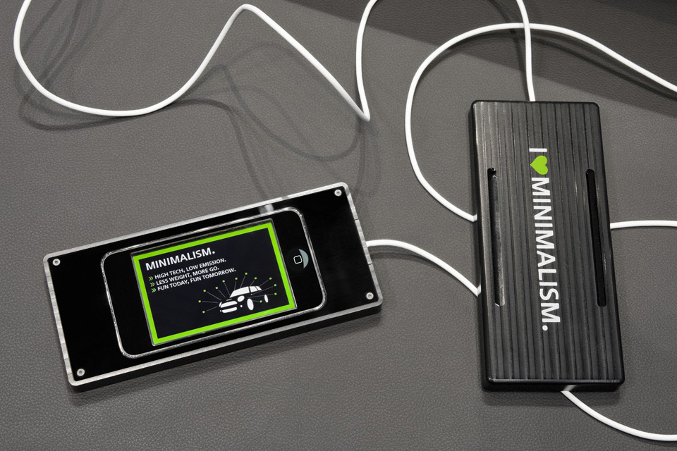 Nach dem erfolgreichen Einsatz des MINIMALISM GoKarts heißt es diesmal: “Lasst uns eine App für iPod und iPhone draus machen!” Gesagt, getan – die Premiere feierte die MINIMALISM Racing App nicht etwa im iTunes Store, sondern wurde exklusiv als Preview auf der Messe Genf 2010 gezeigt. Die dafür entwickelten Gehäuse schützen die iPods vor allzu rabiaten Manövern und machen das Spiel für jeden zugänglich – auch ohne eigenem iPhone oder iPod.